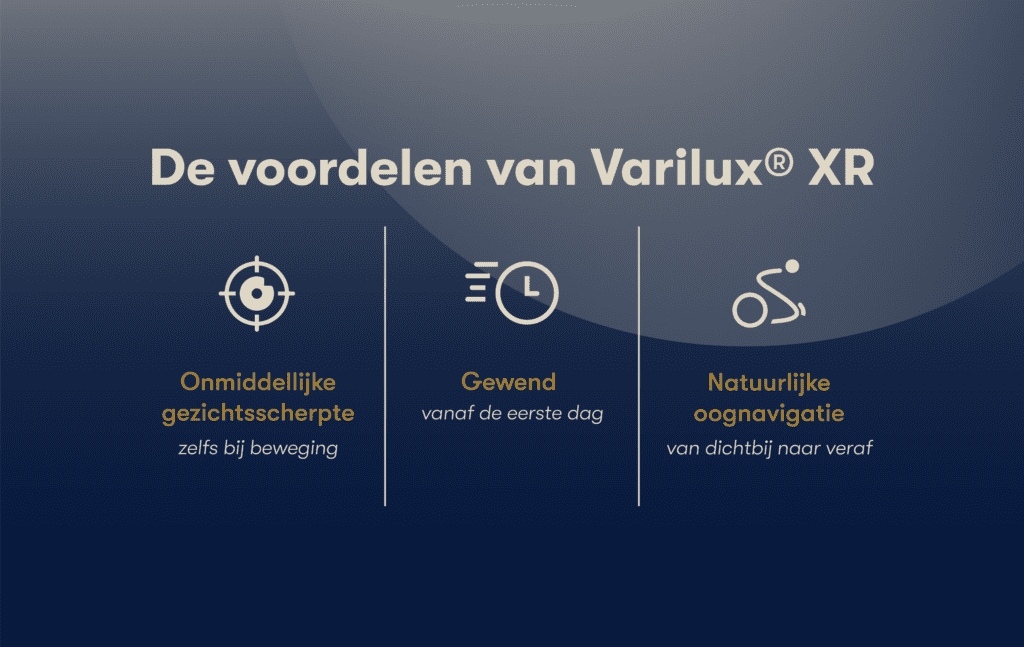 Varilux XR series is algeheel het beste multifocale brillenglas! Dit brillenglas is de eerste die jouw kijkgedrag voorspelt. Hierdoor is het mogelijk om te reageren op de echte bewegingen van jouw ogen. Het geeft onmiddellijk scherp zicht op alle afstanden waardoor je een meer natuurlijke kijkervaring zult ervaren.